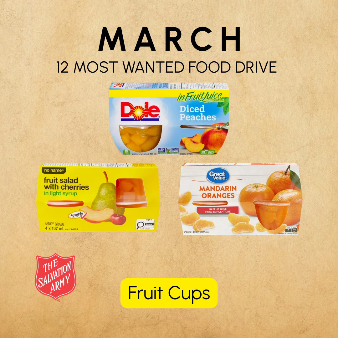 Please bring fruit cups for the month of March.