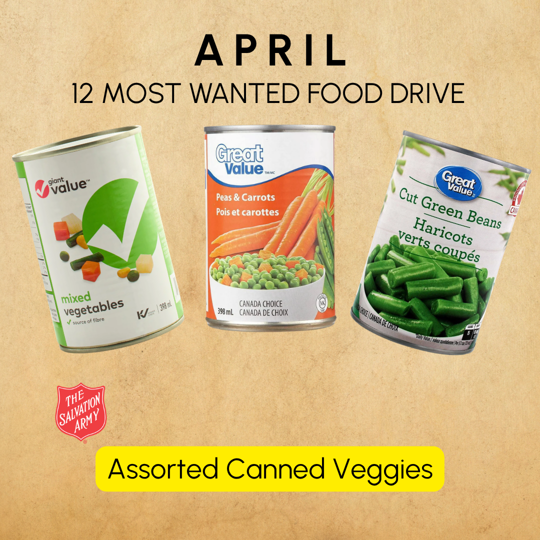 Please bring assorted canned veggies for the month of April.